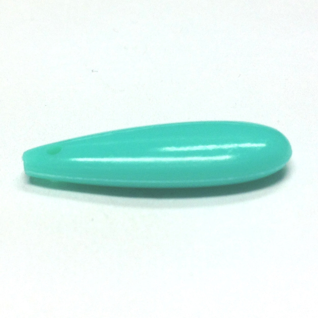 These 14x10mm opaque blue turquoise color acrylic smooth flat pearshape drops are 4mm thick. The hole at the top is from front to back. Tumbled for 3 days to produce a high polish, this is new production from a mold originally made in Germany in the mid 1960s.